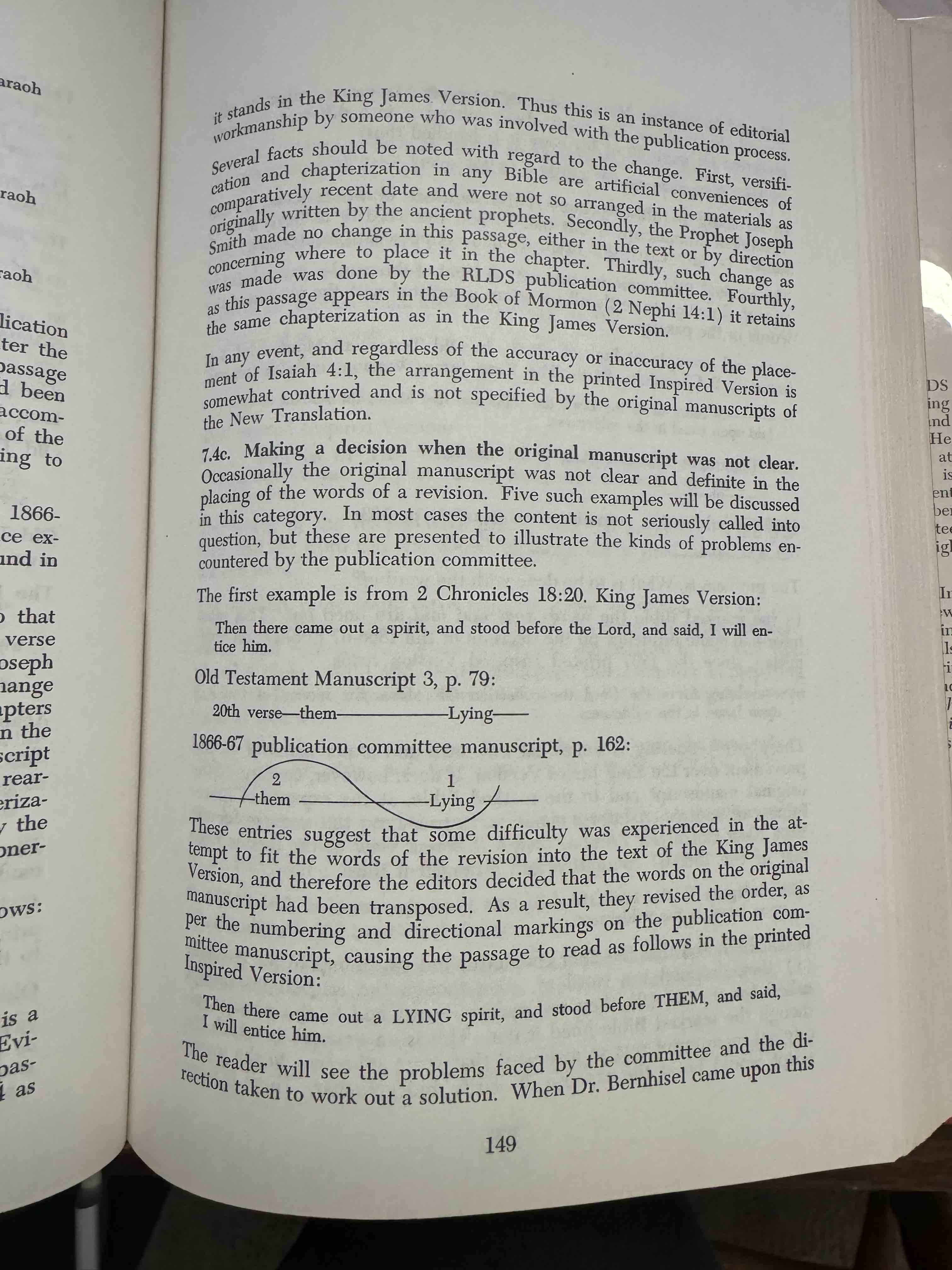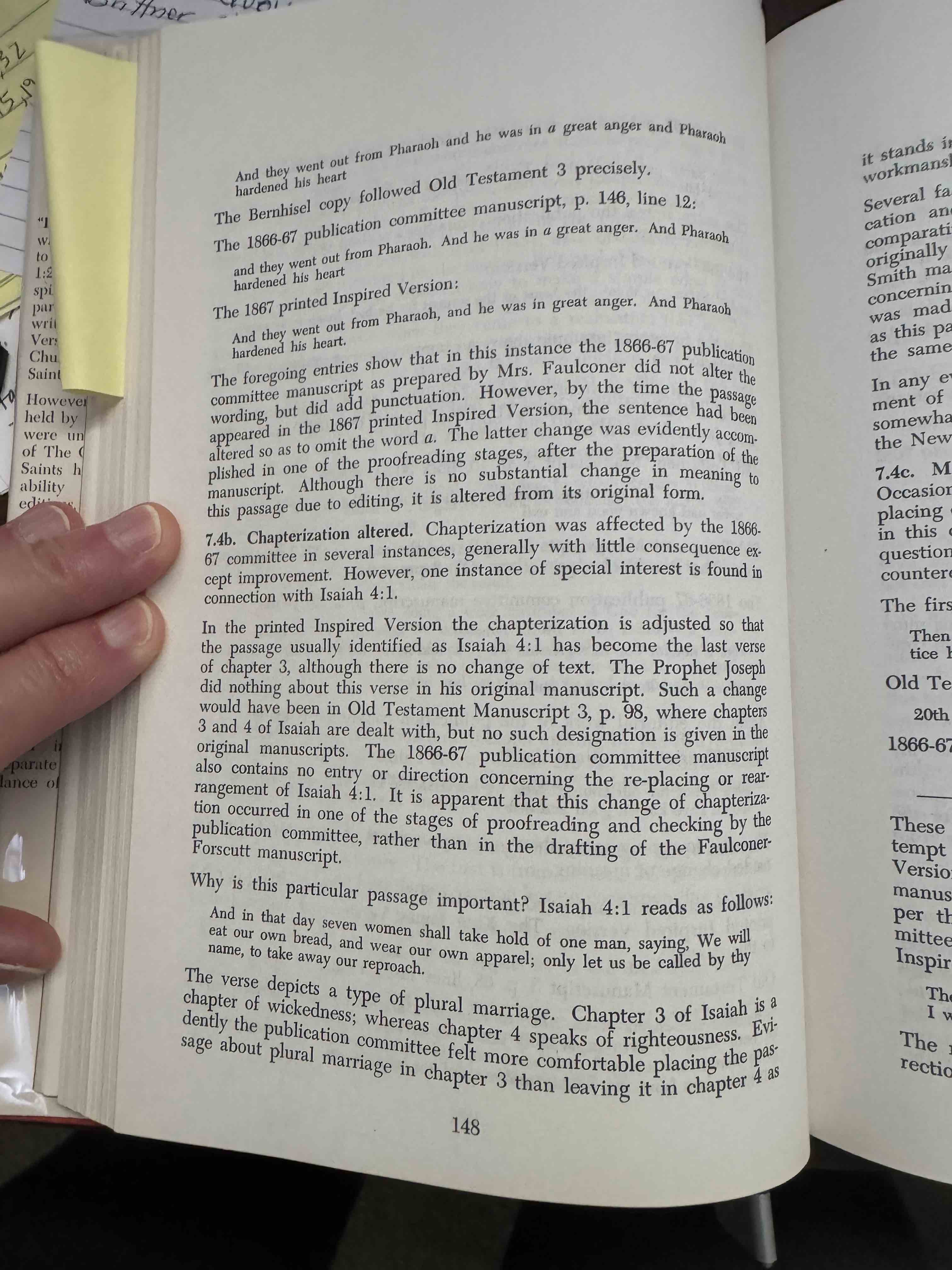 22. Plainer, 148. Manuscripts did not specify placing this verse in Isaiah 3; Book of Mormon (2 Nephi 14:1) retains King James Version placement in Isaiah 4.